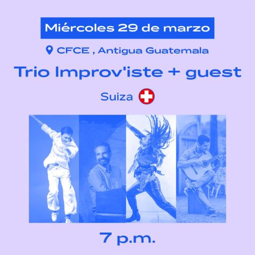 Por su parte, Trio Improv’iste es una agrupación suizo-guatemalteca que combina el jazz con el tap. La cita es el día lunes 27 de marzo y miércoles 29 de marzo a las 19:00 horas.