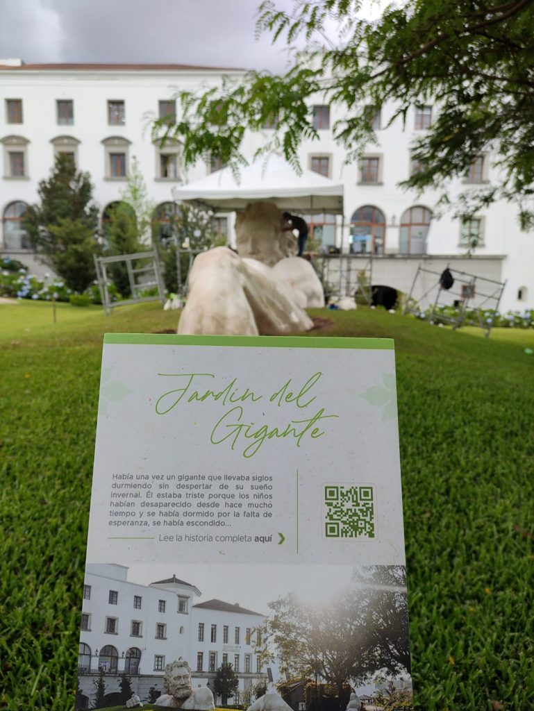 La escultura del Gigante de Cayalá que se instaló cerca de la Fuente de las Virtudes, en el mismo complejo recibió mantenimiento recientemente para que perdure la belleza y estética de la zona.