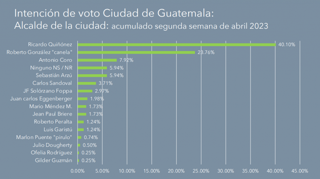 Quiñonez lidera las encuestas de Intención de voto para la Ciudad de Guatemala