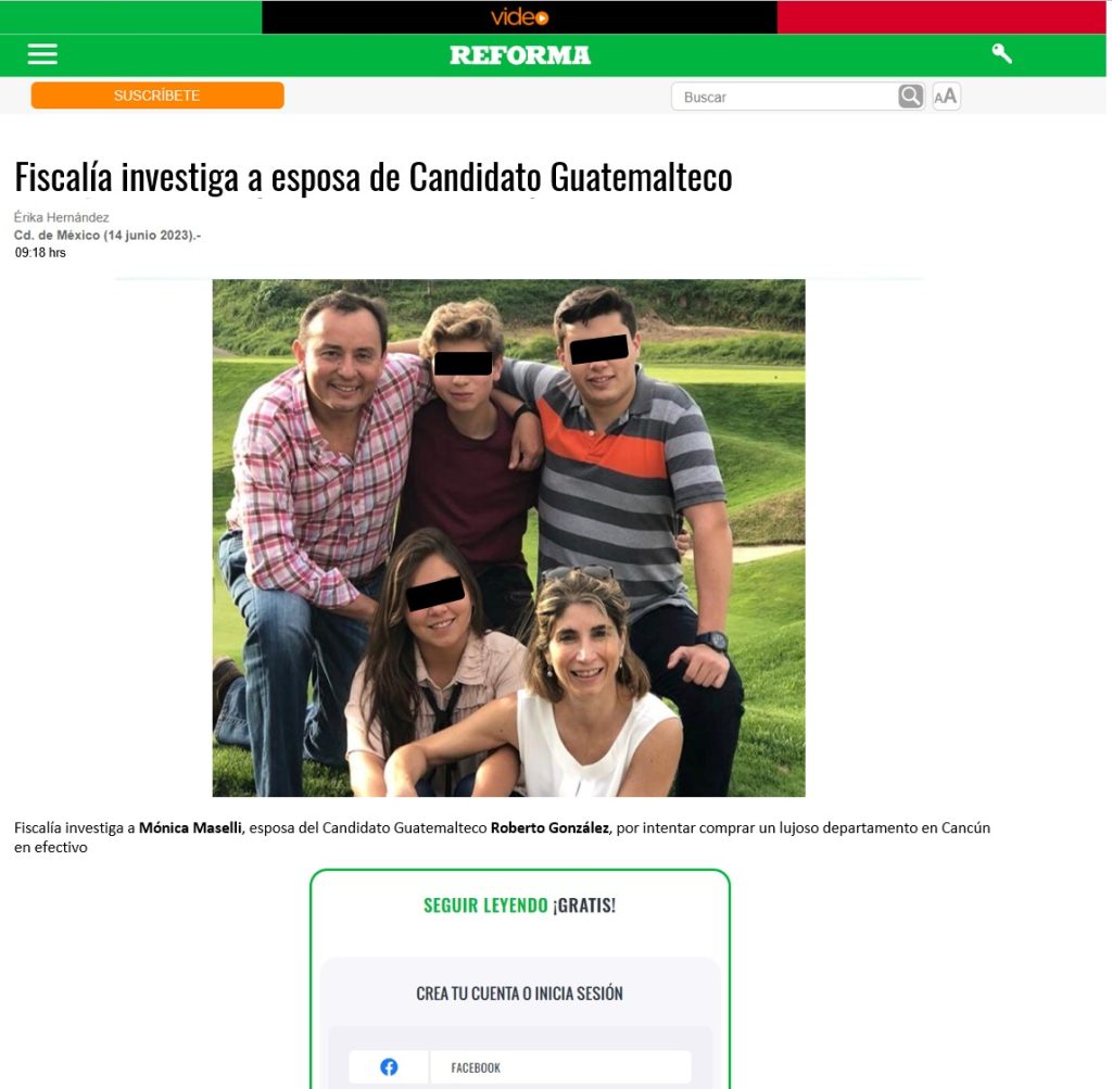 Esta tarde, medios de comunicación mexicanos como Grupo Reforma publicaron una investigación en la que la esposa del candidato a alcalde de la ciudad de Guatemala, Roberto González Canela, estuvo involucrada en el intento de compra de un lujoso departamento en Cancún.